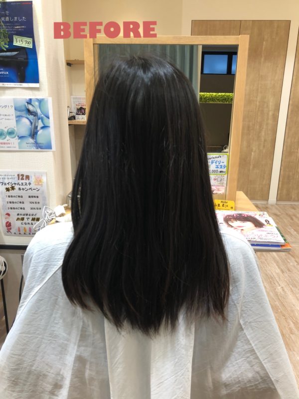 カラーはされてなく黒髪で髪質も直毛なので、あまり下の方にバランスを重たくするとやぼったくなりがちです💦なので、毛先は少し軽すぎず重すぎずの切りっぱなし感のある束感をだすようきしました✂️✨