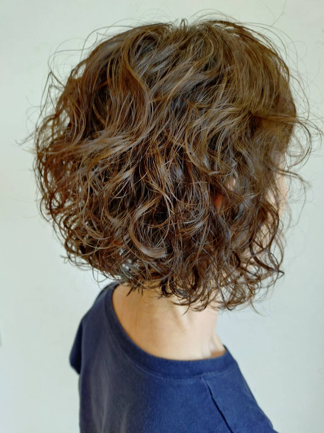 スッキリ短めのボブにパーマをやや強めにかけさせていただきました!