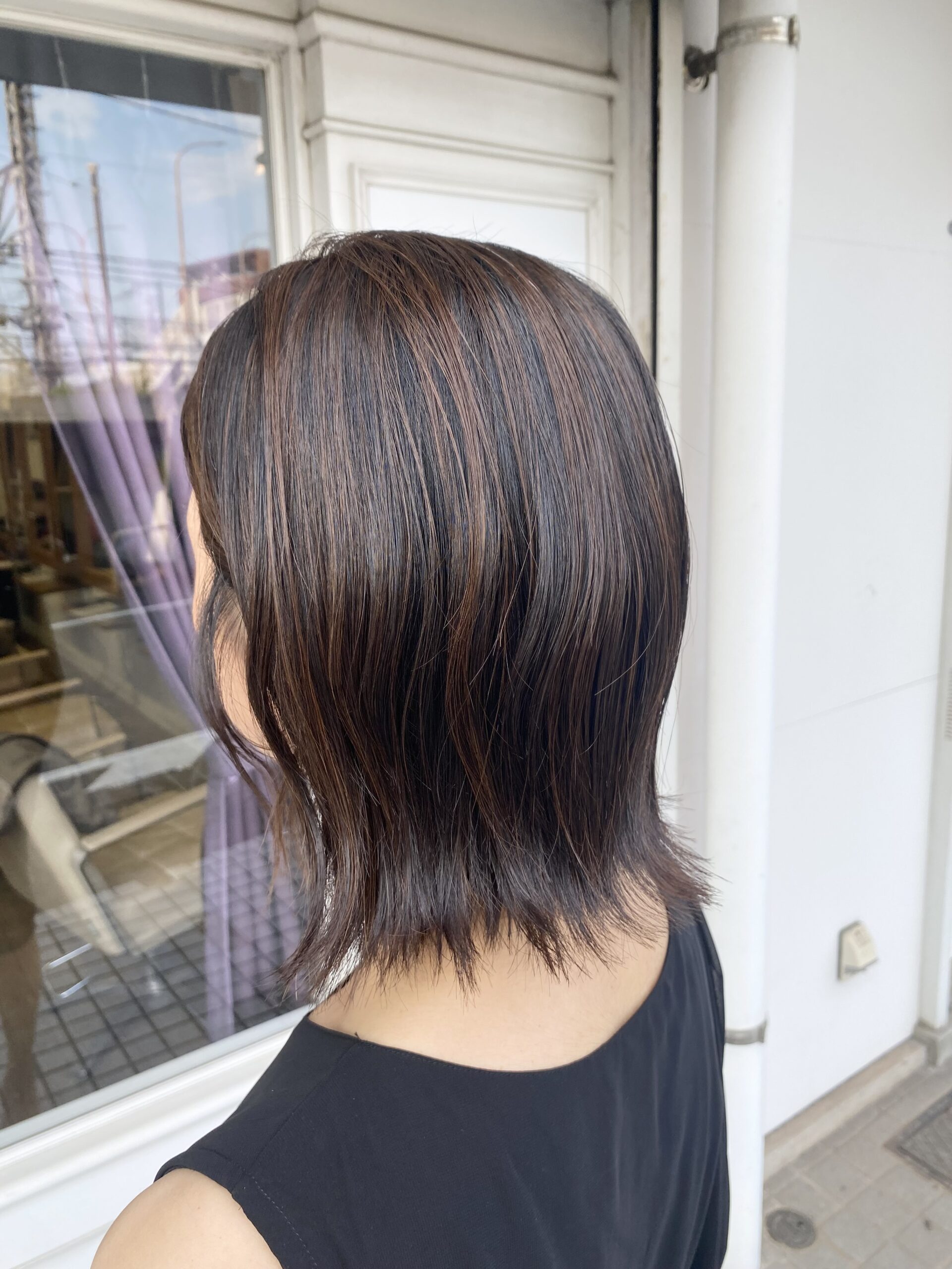 黒髪ベースにハイライトを全体に入れました!明るく変身✨