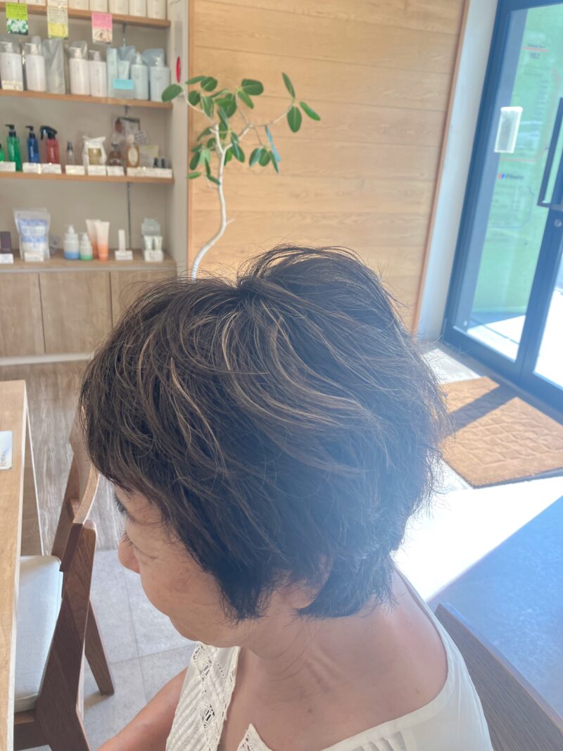 ショートでグレイヘアーのお客様にハイライトでデザインカラーしました。
