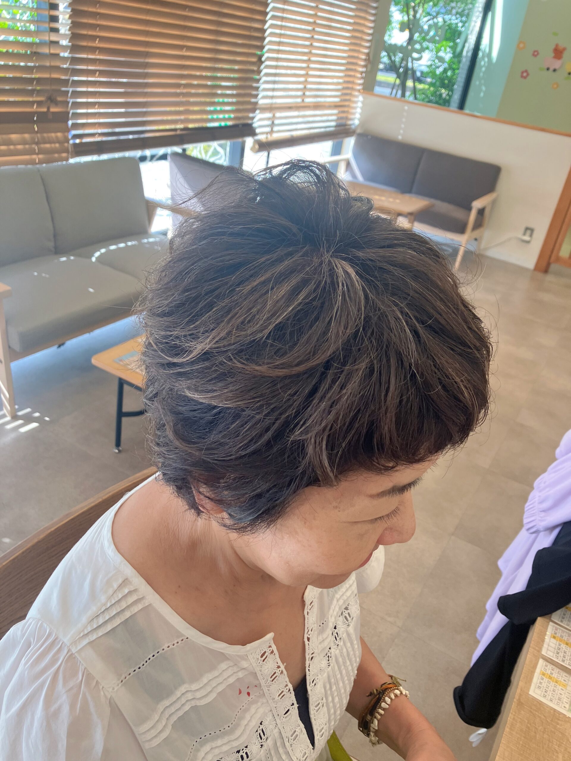 ショートでグレイヘアーのお客様にハイライトでデザインカラーしました。