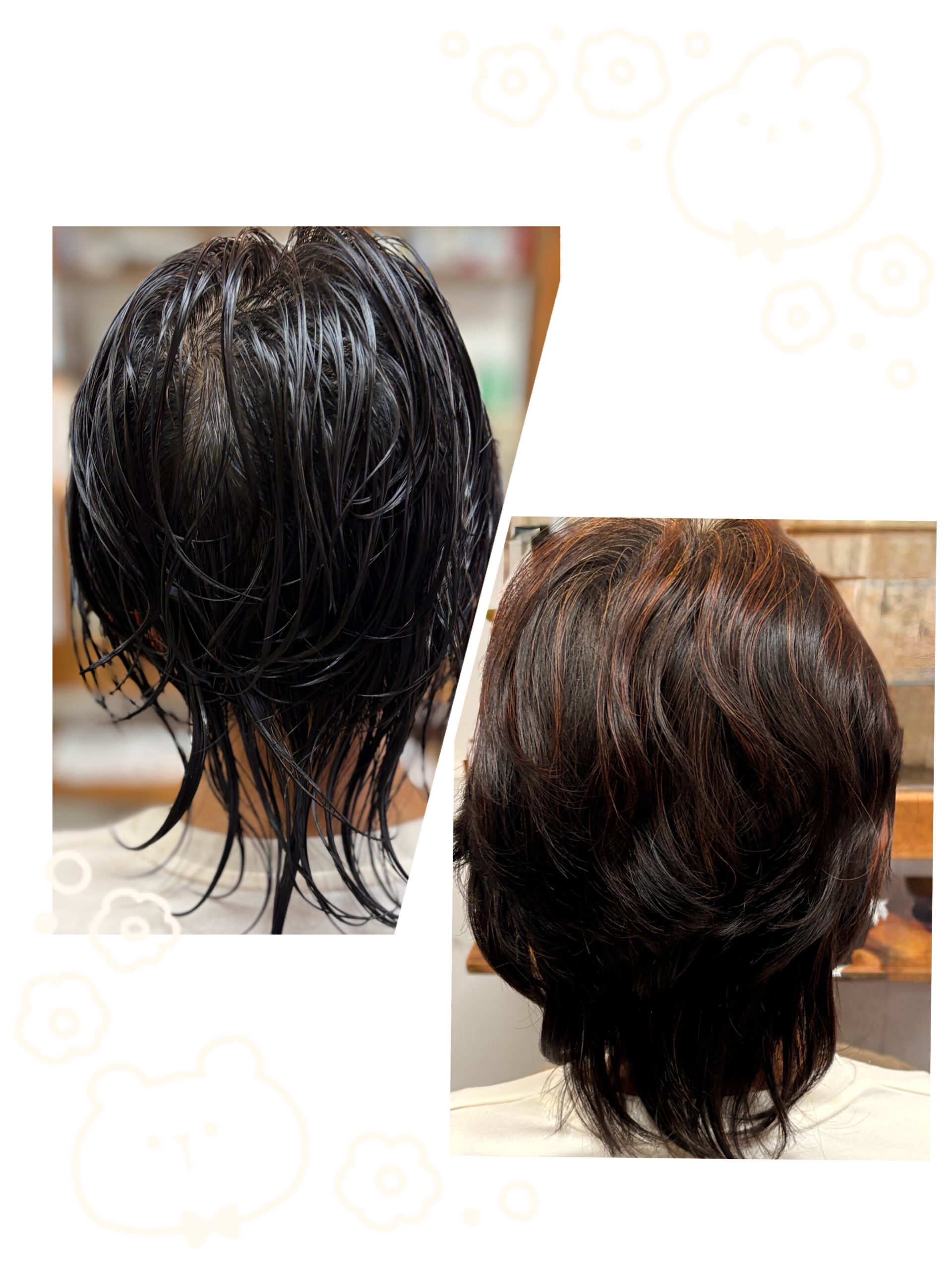 パーマをかける事で毛先のまとまりが良く簡単にまとめられます。