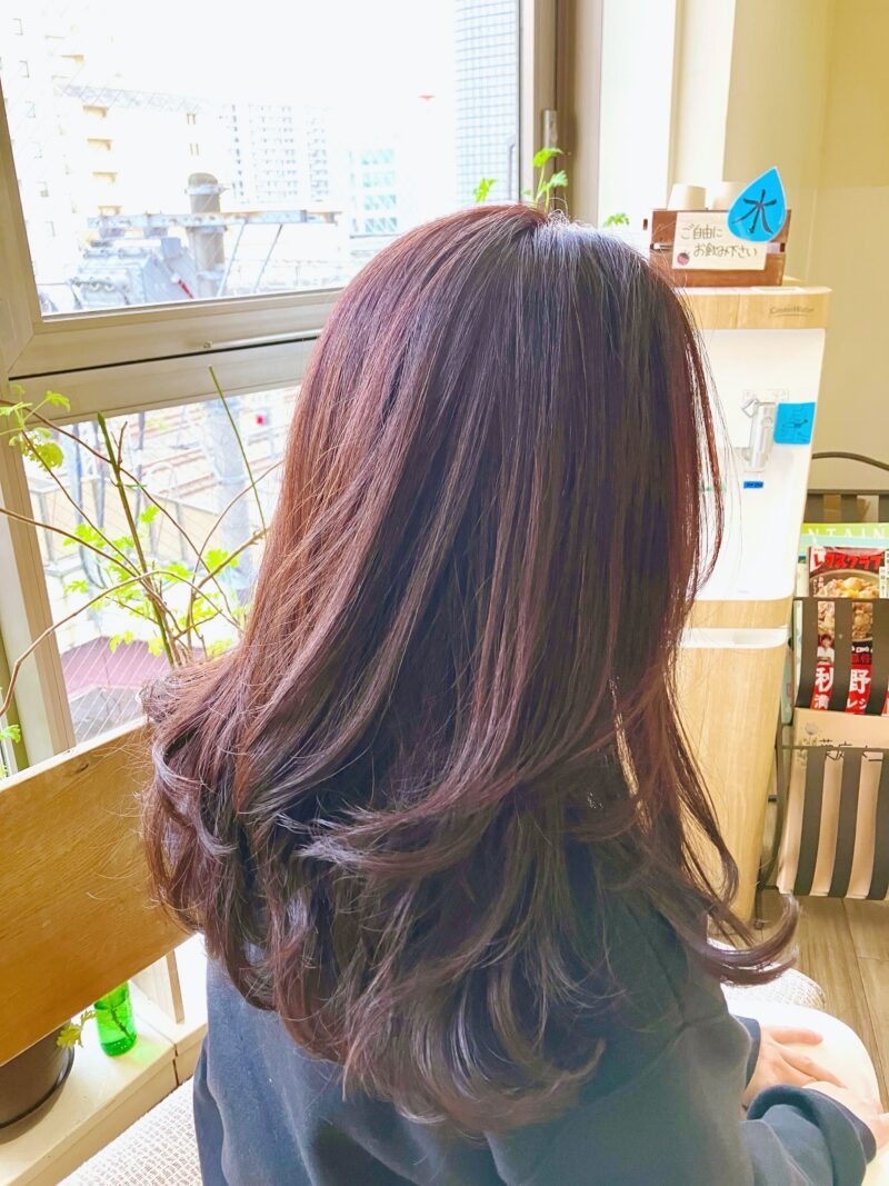 秋冬のオススメカラー、ショコラピンクでカラーリングしたお客様のご紹介です。