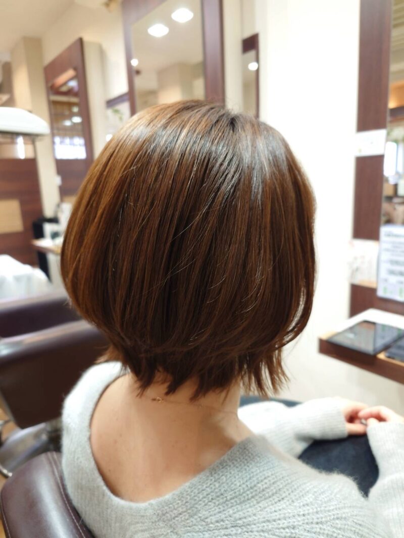 ショートスタイルに抵抗のある方でもショートボブは顔まわりや襟足の長さで短かすぎない長さにもできるので人気です✨
