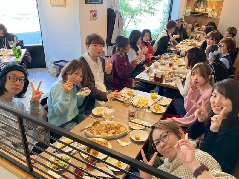 その後はお楽しみの♪ランチ親睦会♪がお隣りのピッコロ ルッソで開かれました。シェフの美味しいイタリアンが次々はこばれてきました。チキンカツ(キノコソース) ピザ風バケット オムレツ トリッパ パスタなどなど。