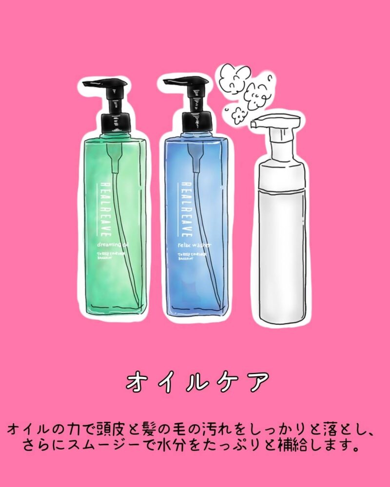 オイルの力で頭皮と髪の毛の汚れをしっかりと落とし潤いを与えます。