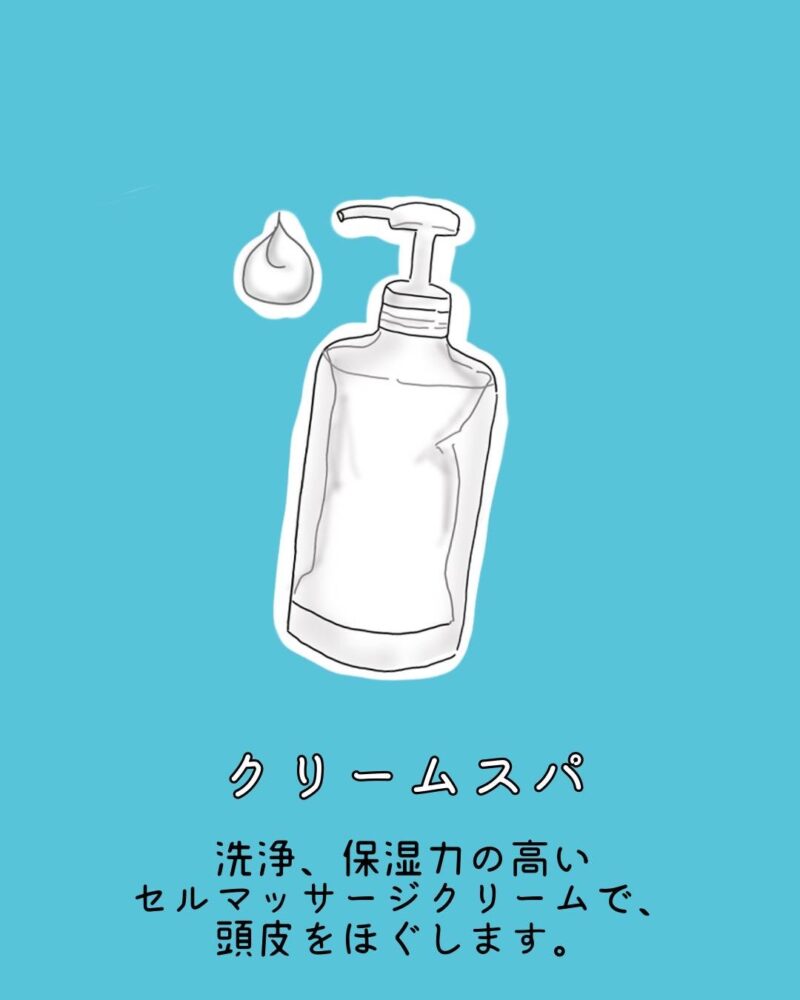 洗浄、保湿力の高いセルマッサージクリームで頭皮をほぐします。髪の毛もしっとりと仕上がります。