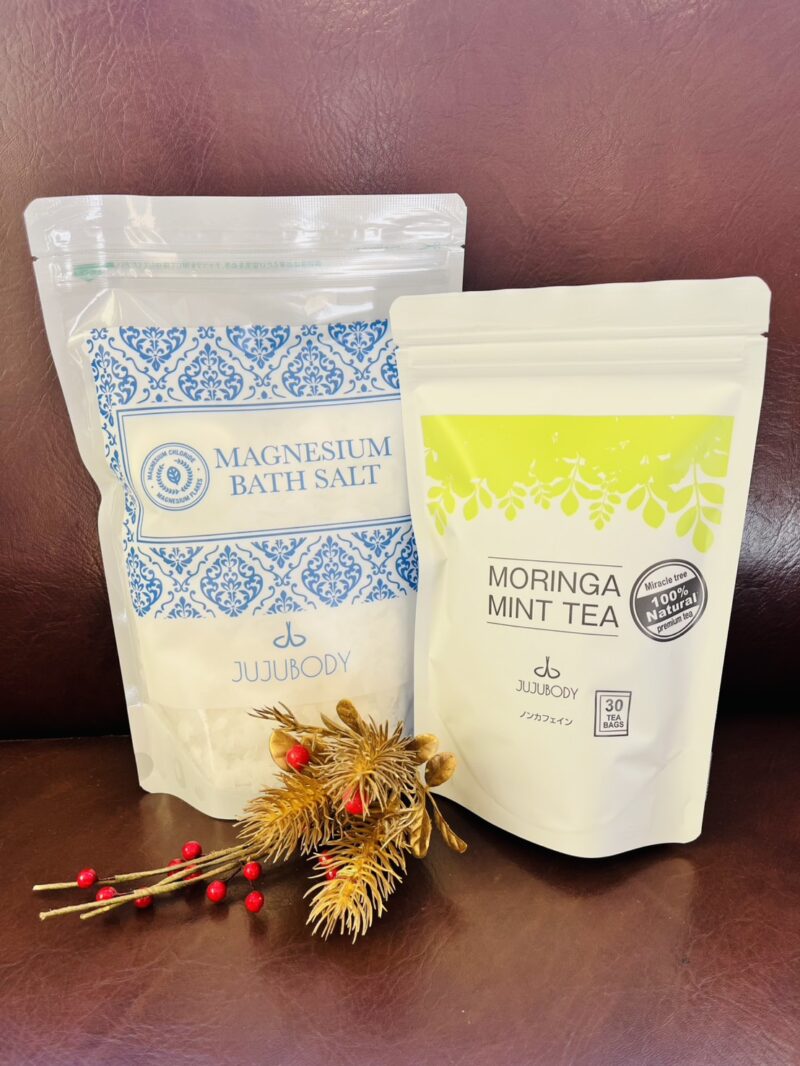 マグネシウムバスソルト入りの湯船にゆっくり浸かって、モリンガミントティーでリセットするのもいいかなぁと思います♪