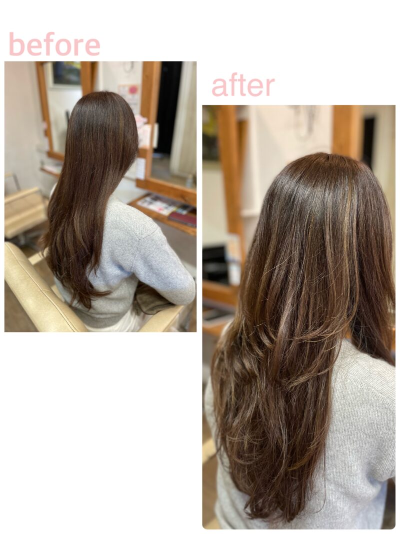 「全体の長さは変えたくないけれど、雰囲気を変えてみたい」という方にぴったりのスタイルです。