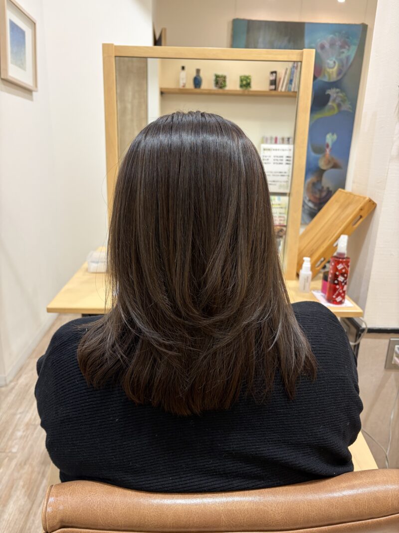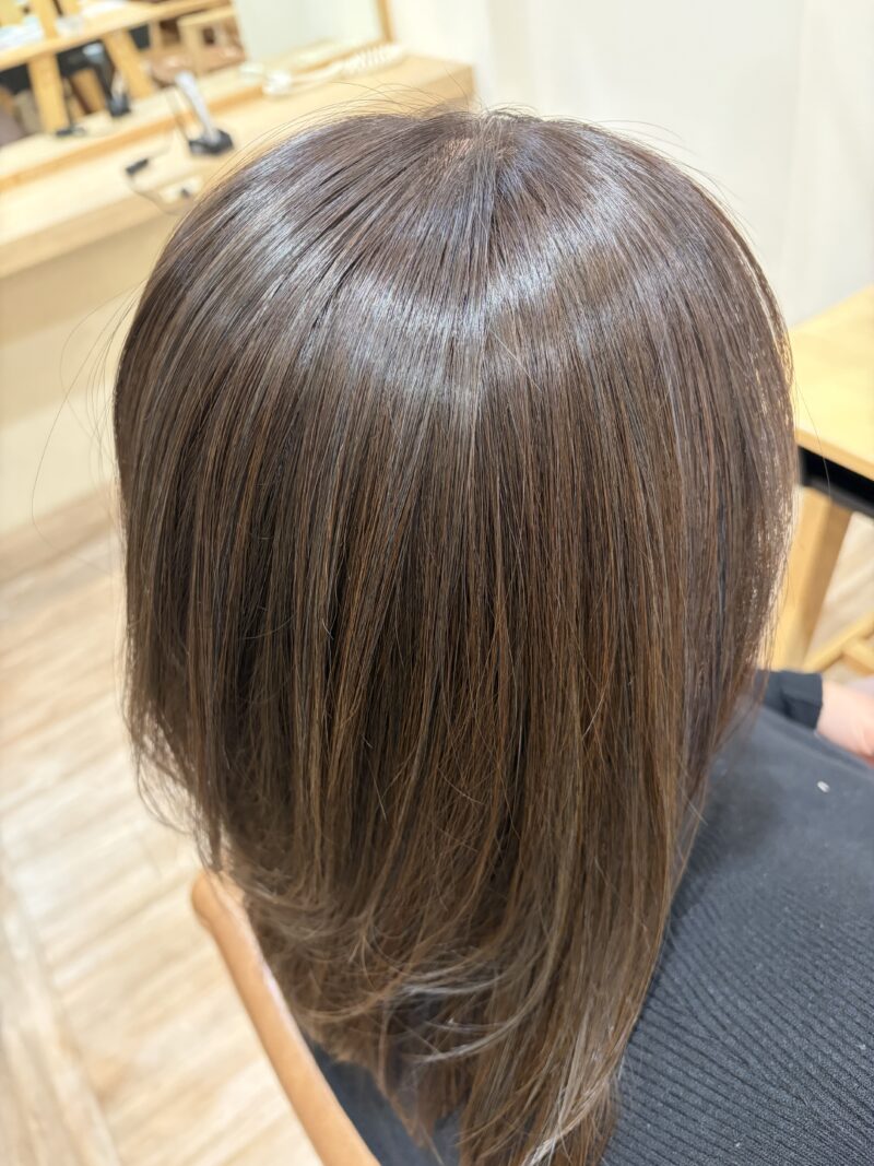 ハイライトを入れさせて頂いていて、前回のカラーが明るさはいいけど、色落ちが…との相談を受けて、新色でカラーさせて頂きました。