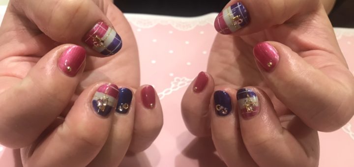 こんにちはdecoのネイリストのウルです。 秋になりツイードやチェックが人気です。 ピンクとパープルが個性的でオシャレでした✨ い...