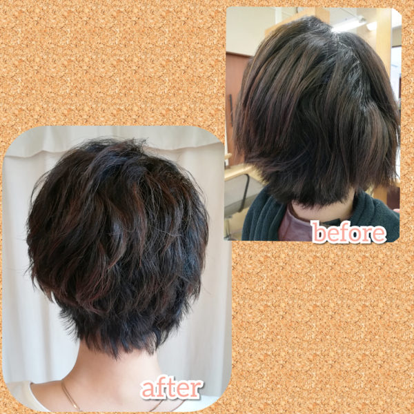 ずっとストレートパーマをかけていたお客様が、「脱!ストレートをしたい!」との事で、バッサリとショートカットさせてもらいました。