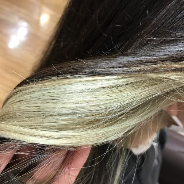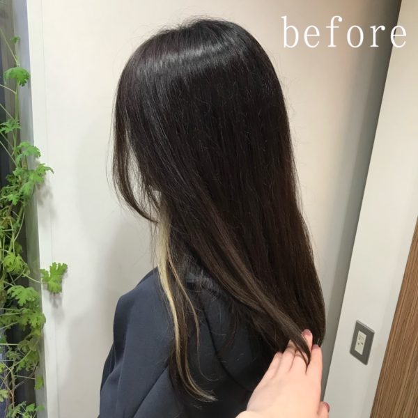 インナー部分の根本をブリーチした後に、紫色を被せました☃️💟毛先部分は白に近いくらいにブリーチしてあります!